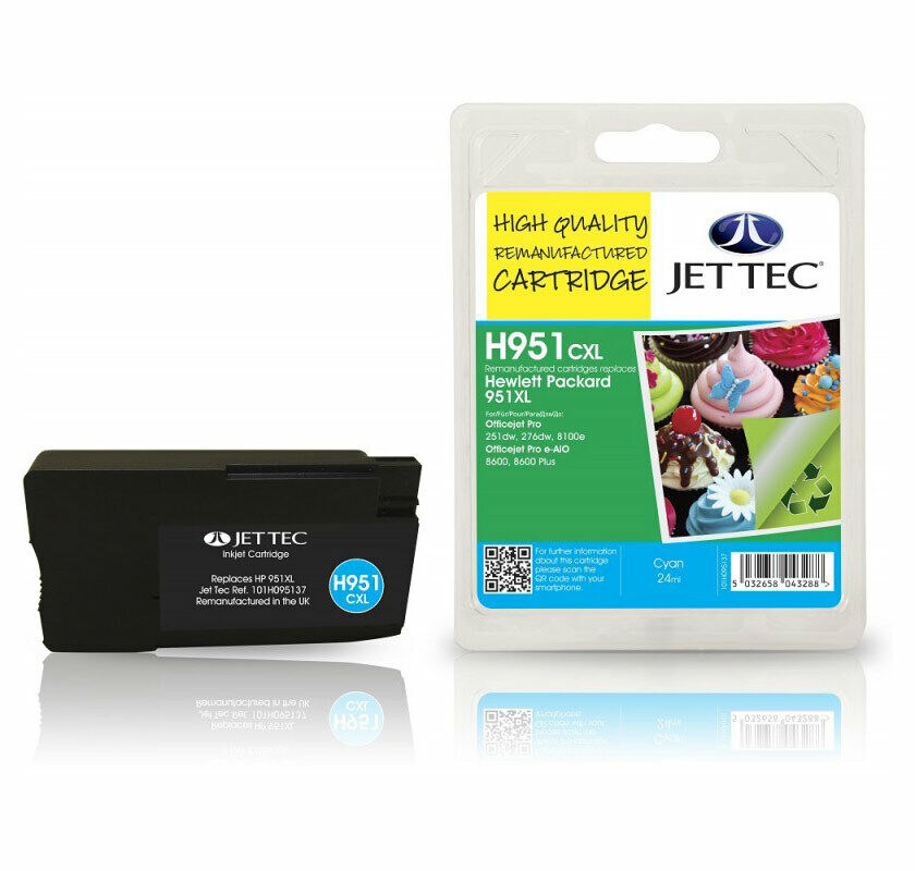 H951XL Cyan High Capacity JetTec Ink Cartridge to replace HP951XL