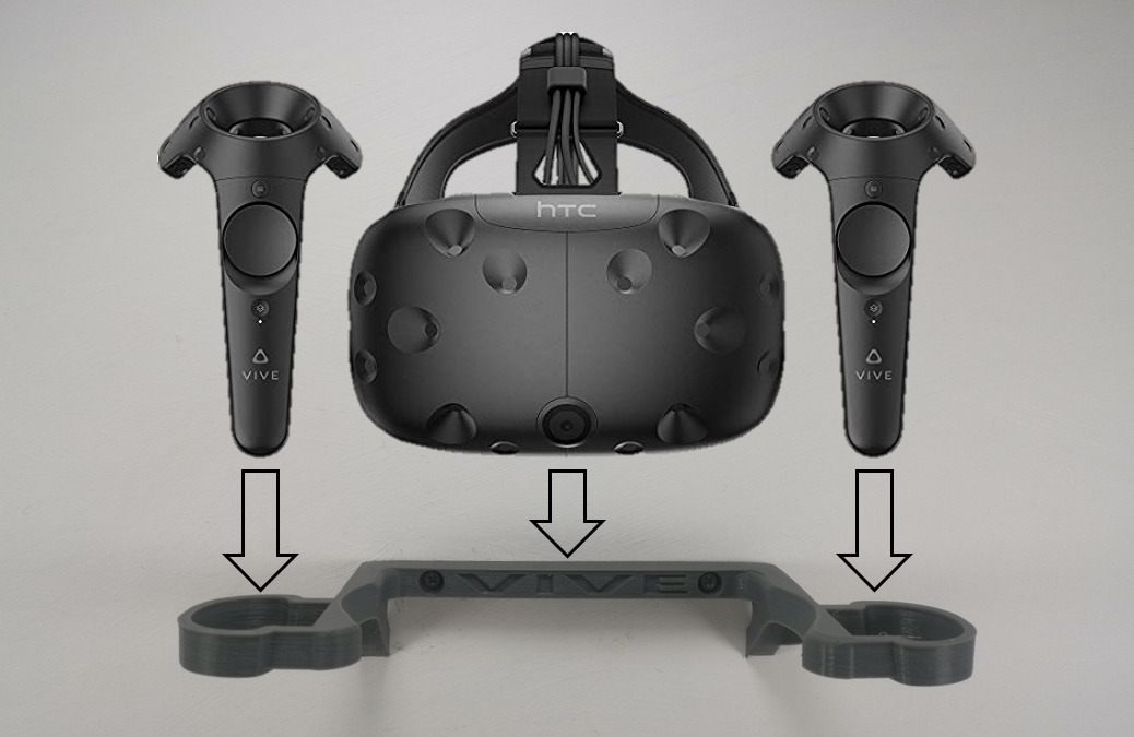Wall Mount / Bracket For The HTC VIVE Headset and Controller In Grey