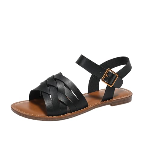 Cocila Sandals For Women Size 5 Ladies Casual Side Hollow Belt Buckle Flat Roman Shoes Summer Fashion Black, 5 3 Pink White Womens Black Heels Gold Party Huarache Wide Fit Evening 8 Silver