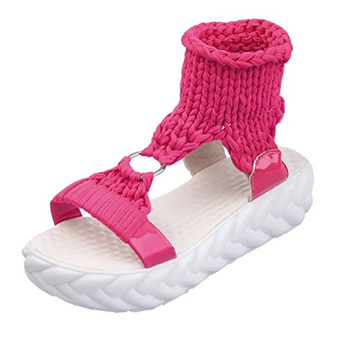 Ladies Sandals Summer New Platform Thick Sole With Skirt Casual Open Toe Versatile Beach Casual Sandals Huarache Sandals Women Closed Toe (Hot Pink, 8)