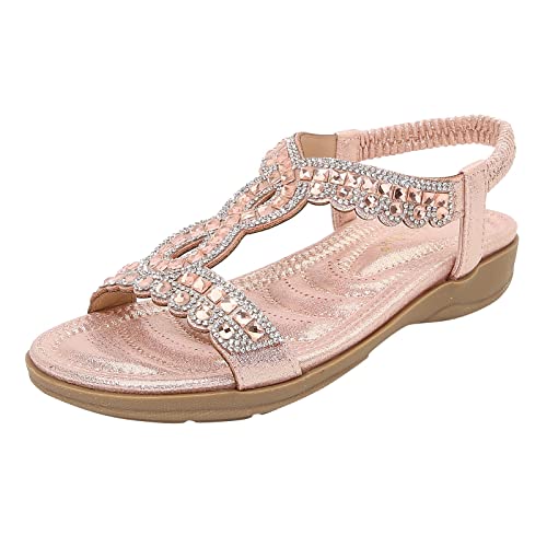 Cocila Comfy Sandals For Women Uk Shoes Thick Soles With (Pink, 6) Ladies Black Walking Comfortable+Sandals Jewelled Work Mid Height Heels Womens Summer Wide Fitting Cream Wedges Huarache Flat