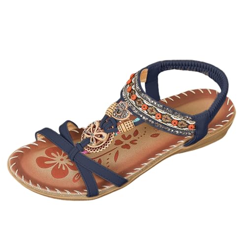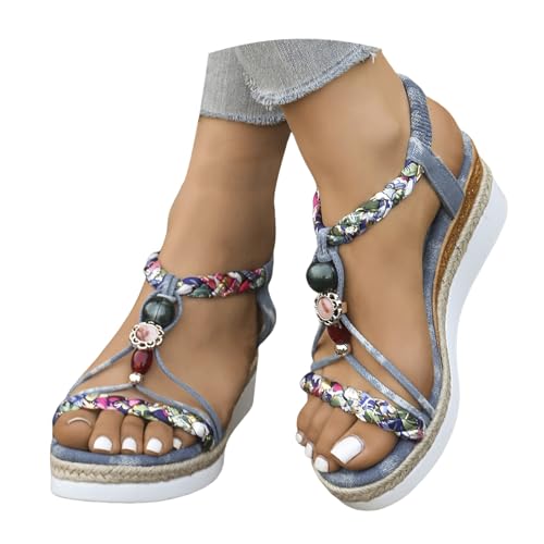 Cocila Womens Sandals Platform Women'S Summer Beads Comfortable Espadrilles Elegan Open Blue, 7.5 Low Heels For Women Huarache Navy Blue Size 6 Sparkly Walking Ladies Wedge Uk Pink 7 White