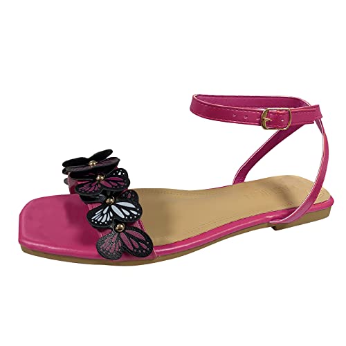Cocila Ladies Wide Fit Sandals Fashion Summer Butterfly Decorative Open Toe Roman Buckle Hot Pink, 6 Huarache Women Beige Wedge For With Rhinestones Women'S Wide-Fit Shoes Heels Strap Size 9