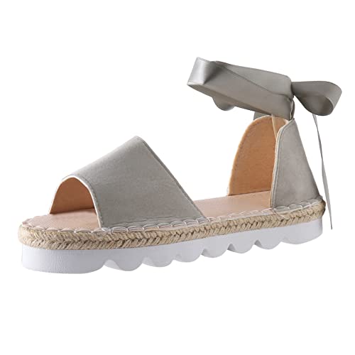Cocila Walking Sandals Womens Detail Espadrille Strap For Women Casual Open Toe Roman Platform (Grey, 7) Ladies Size 3 White Sandles Soft Sole Black Wedge Wide Fit Gold Sports Red Shoes Huarache