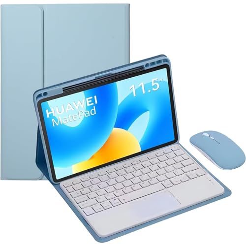 kuaijiexiaopu Detachable Normal/Touch Keyboard, Flip Leather Protective Case compatible with HUAWEI MatePad 11.5 inch 2023(Sky Blue+Touch Keyboard+Mouse)