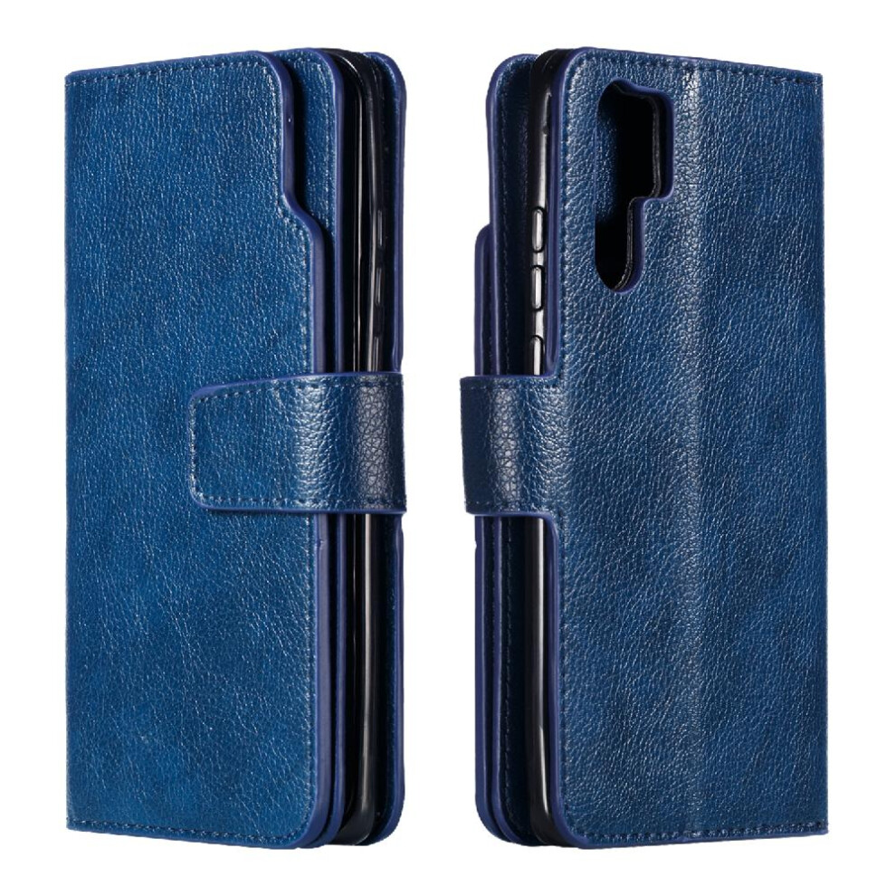 (Blue) Case For Huawei P30 Pro Kickstand Magnetic Wallet PU Leather 9 Card Slots