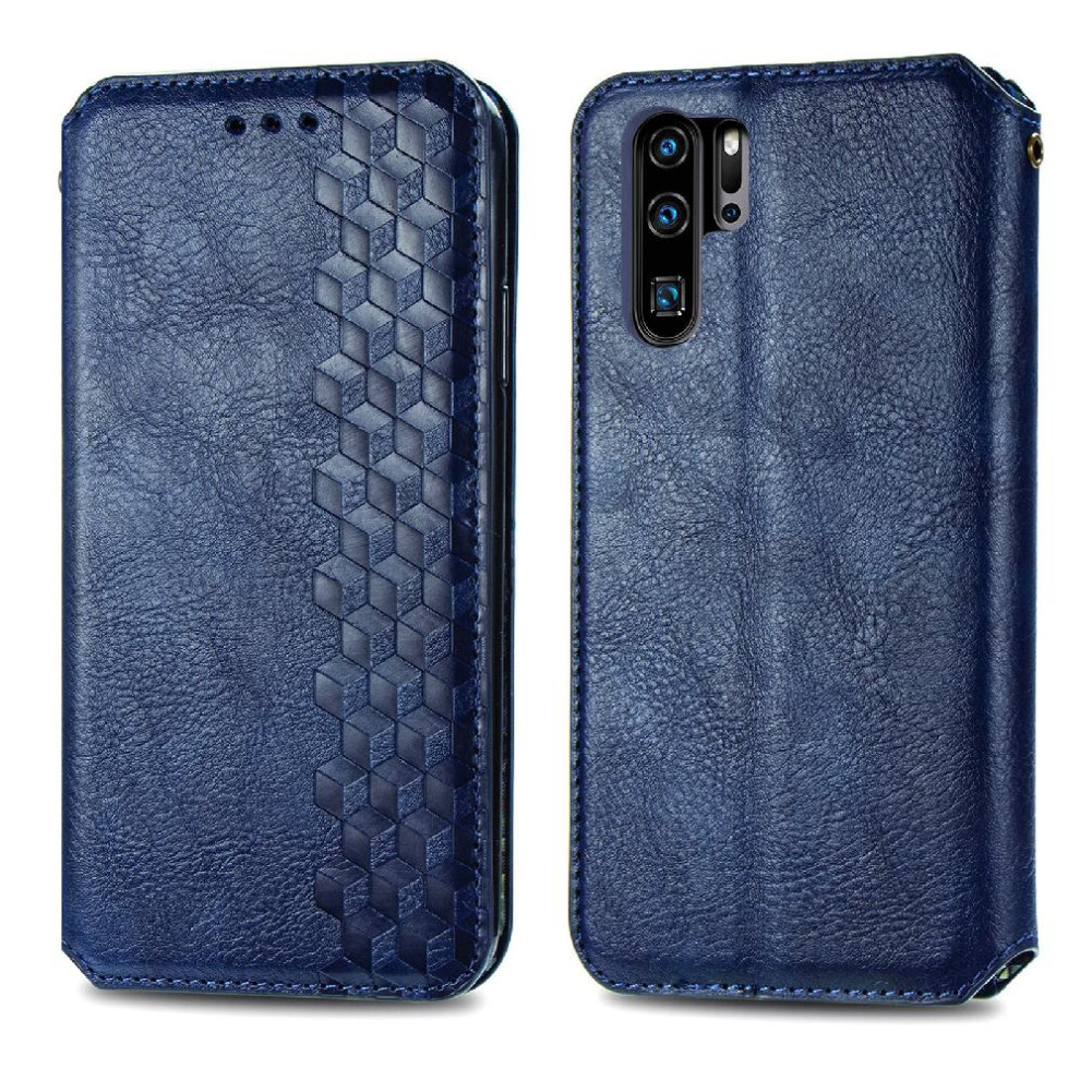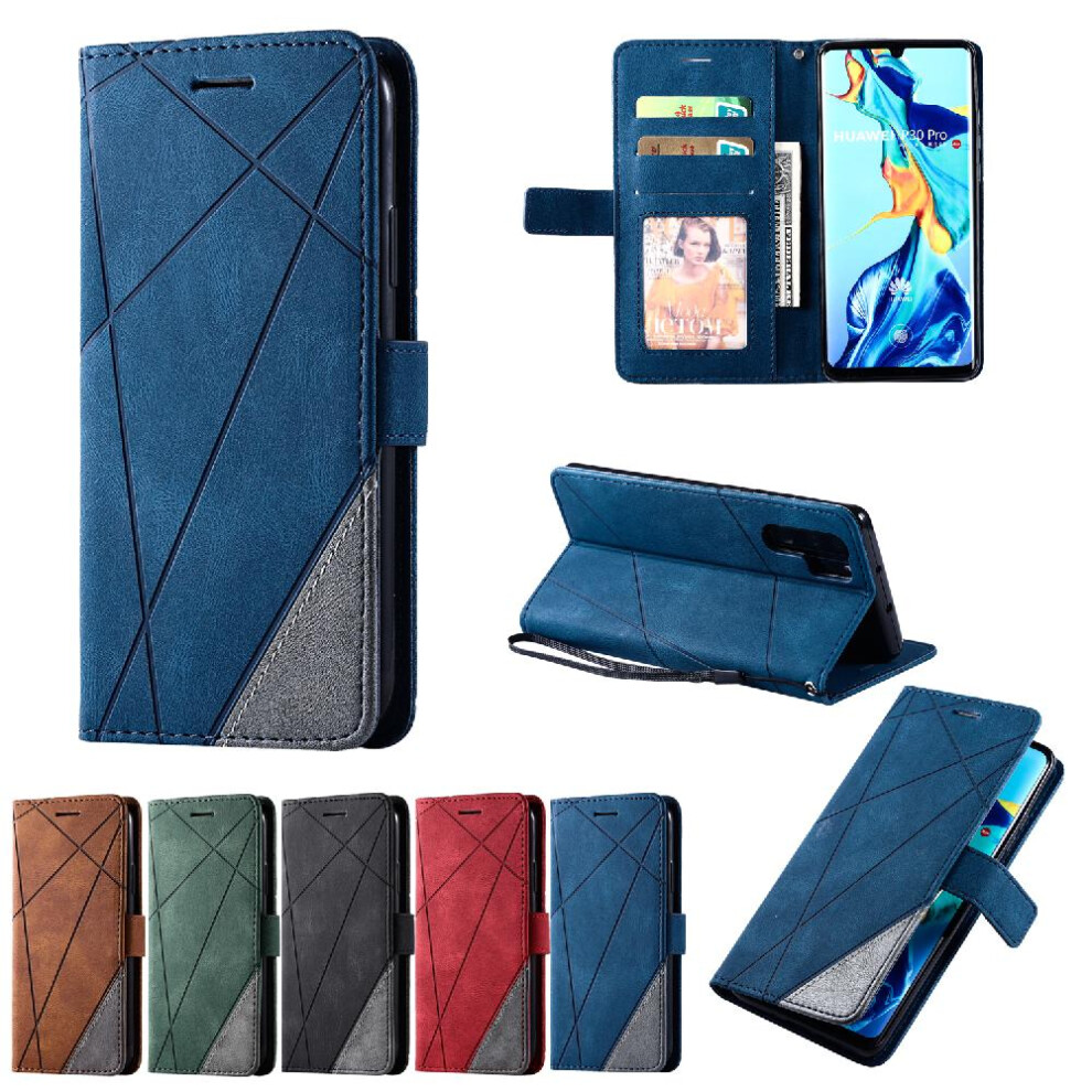 (Blue) Case For Huawei P30 Pro PU Leather Shockproof Magnetic Wallet Flip Folio Card Holder Kickstand