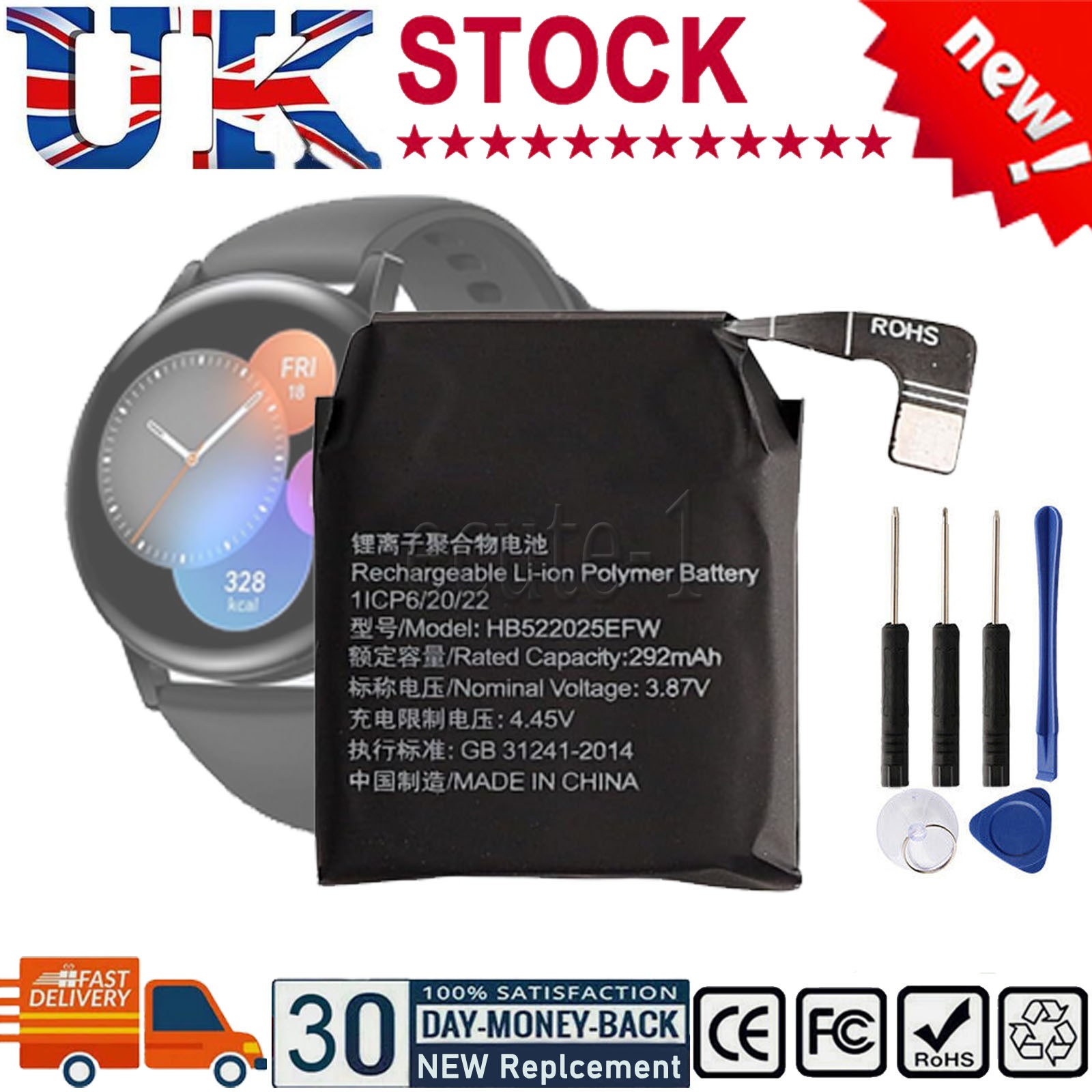 HB522025EFW Battery for Hua-wei Watch Smartwatch GT3 42 mm GT3 Pro 42 mm + Tools