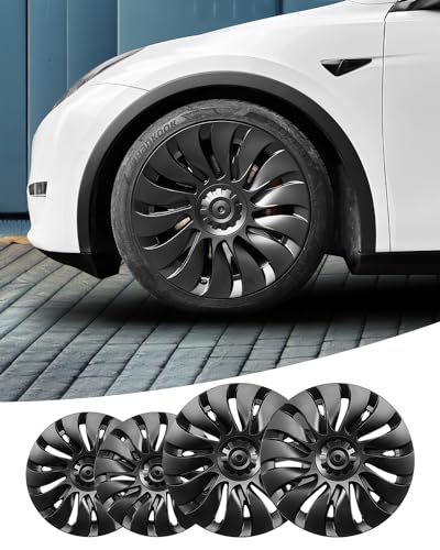 19 inch Model y Wheel Cover, Replacement Hub Caps Wheel HubCaps Rim Protectors Cover, Set of 4 Wheel Hub Cap Kit Compatible with Tesla model y (Cyclone Turbine Style)
