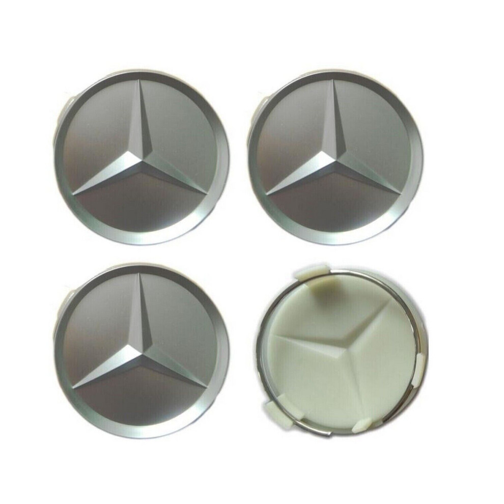 4x Mercedes Benz Wheel Center Caps Star Logo 75MM Matte Silver Hubcaps