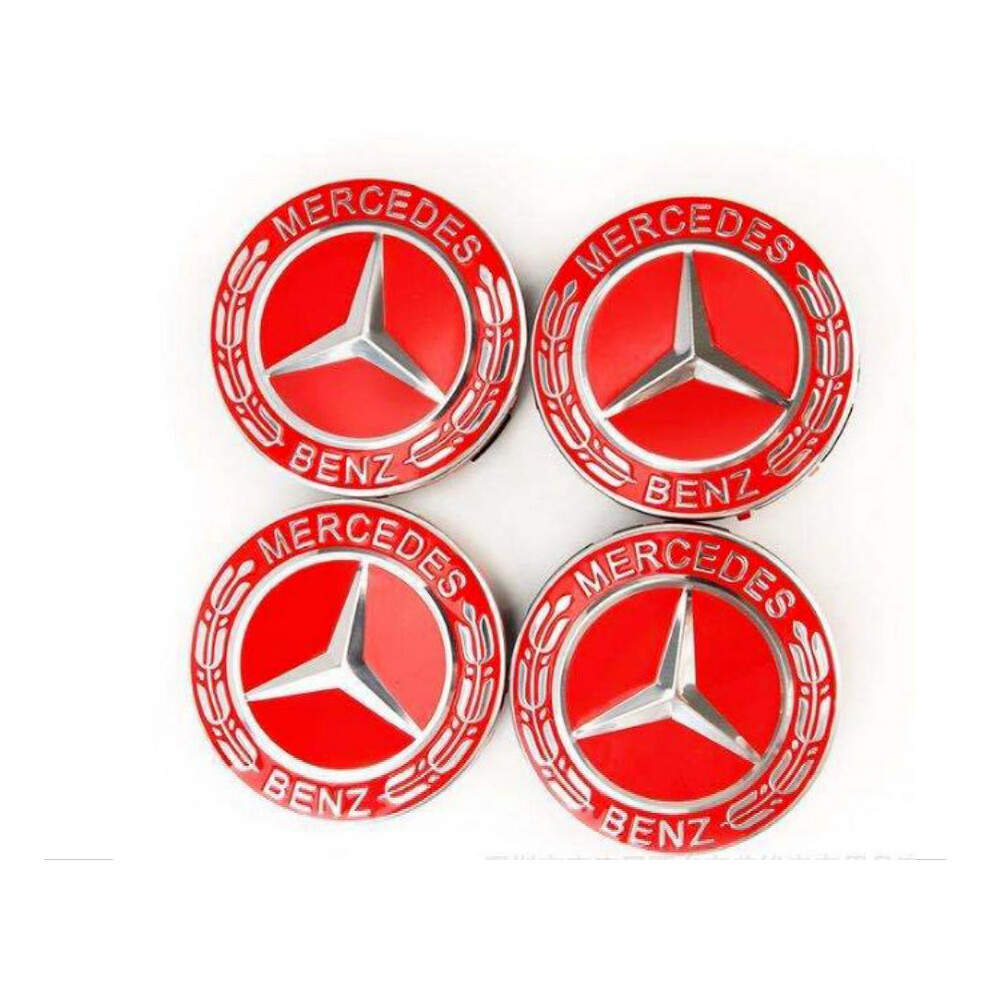 4x Mercedes Benz Wheel Center Caps Star Logo Emblem 75MM RED Hubcaps
