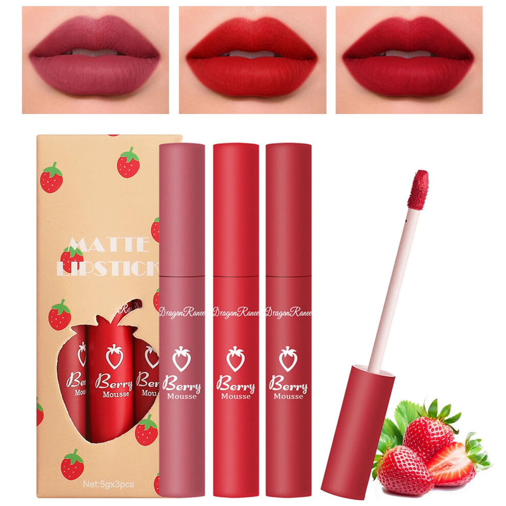 3 pcs Long Lasting Matte Velvet Lip Gloss Set Waterproof Liquid Lipstick for Women and Girls Perfect Gift for Beauty
