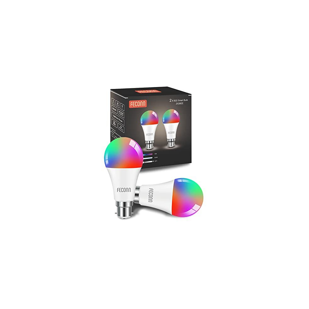 Zigbee Smart Bulb Bayonet, Compatible with Hue*, Alexa & Google (Hub Required), ConBee, 10W=60W, Dimmable LED B22 Smart Lights, RGBCW, 2 Pack