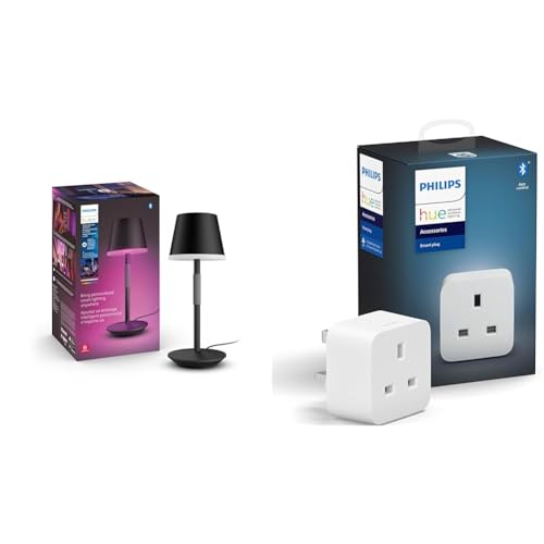 Philips Hue Go Smart Portable Table Lamp [Downlight - Black] White & Colour Ambiance LED & Smart Plug for Smart Home Automation. Works with Alexa, Google Assistant and Apple Homek