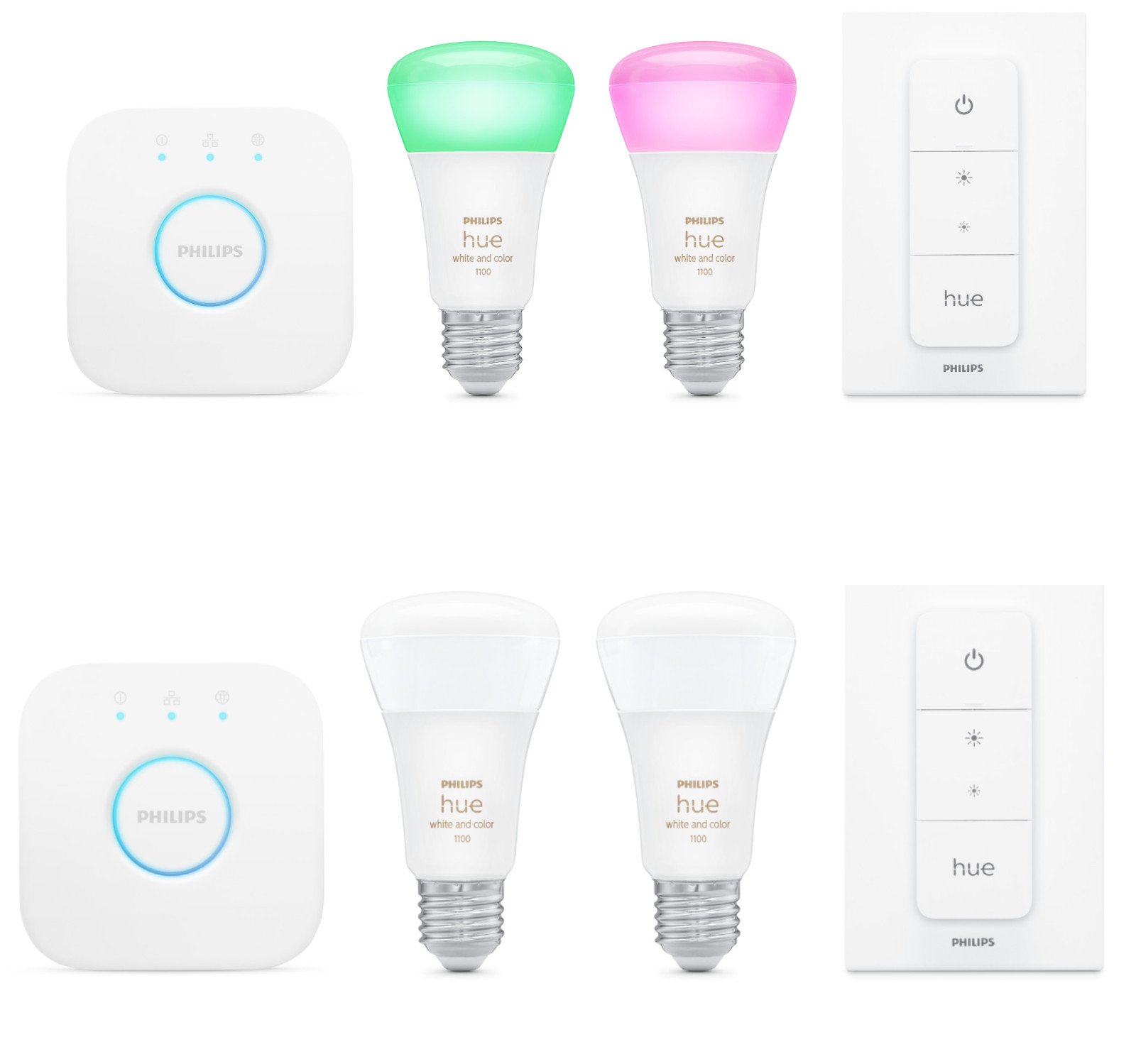 Philips Hue Essential Starter Kit: Bridge + 2 Essential B22 Smart Bulbs, White and Color Ambiance, 2200K-6500K, Dimmable, Works with Alexa, Google Assistant, Samsung SmartThings, Apple Home