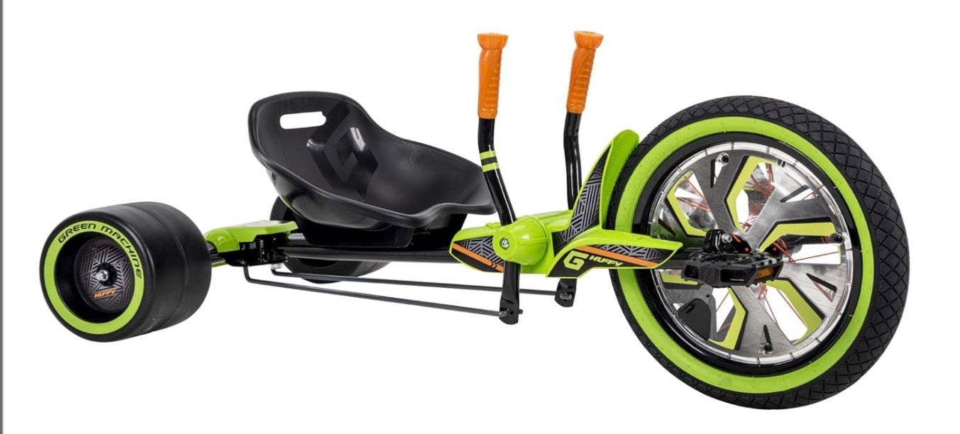 Huffy Green Machine Drift Trike, Sleek Ergonomic Design, Adjustable Seat, Drift Trike Thrill Kart for Kids, 20 Inch