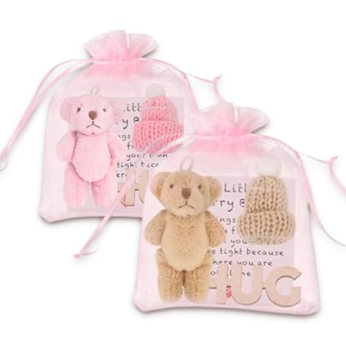 HgaftnK Worry Bear Pocket Hug 2 Pack, Mini Plush Teddy with Organza Bag and Card, Cute Hug a Lumps Anxiety Support, Thinking of You Gifts for Women Friends Student