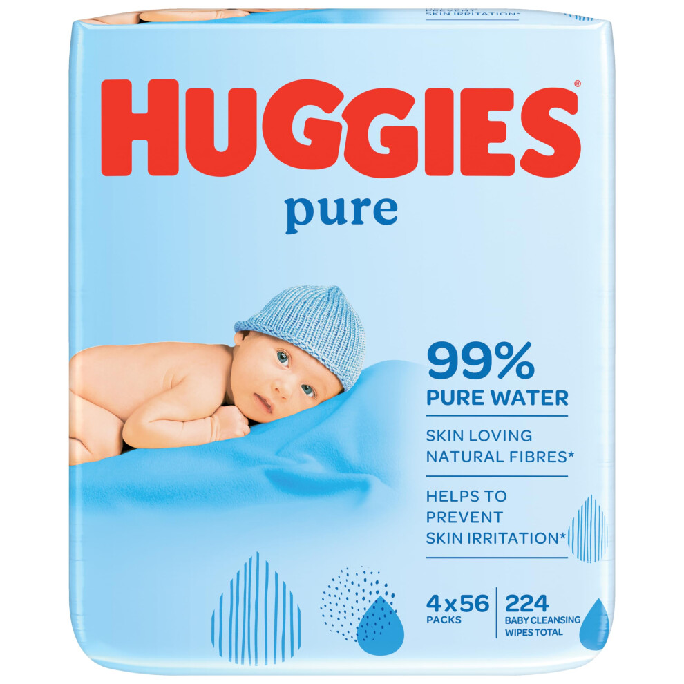 Huggies Pure, Baby Wipes, 56 Wipes - Natural Wet Wipes for Sensitive Skin - 99 Percent Pure Water - Fragrance Free to Clean and Protect