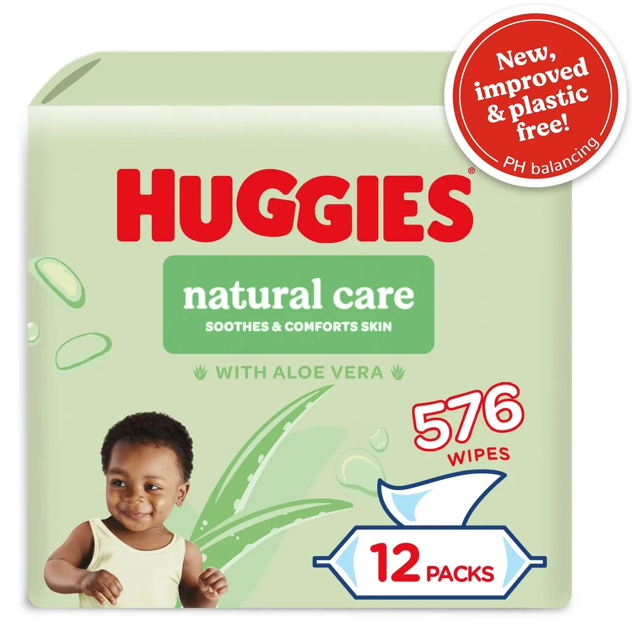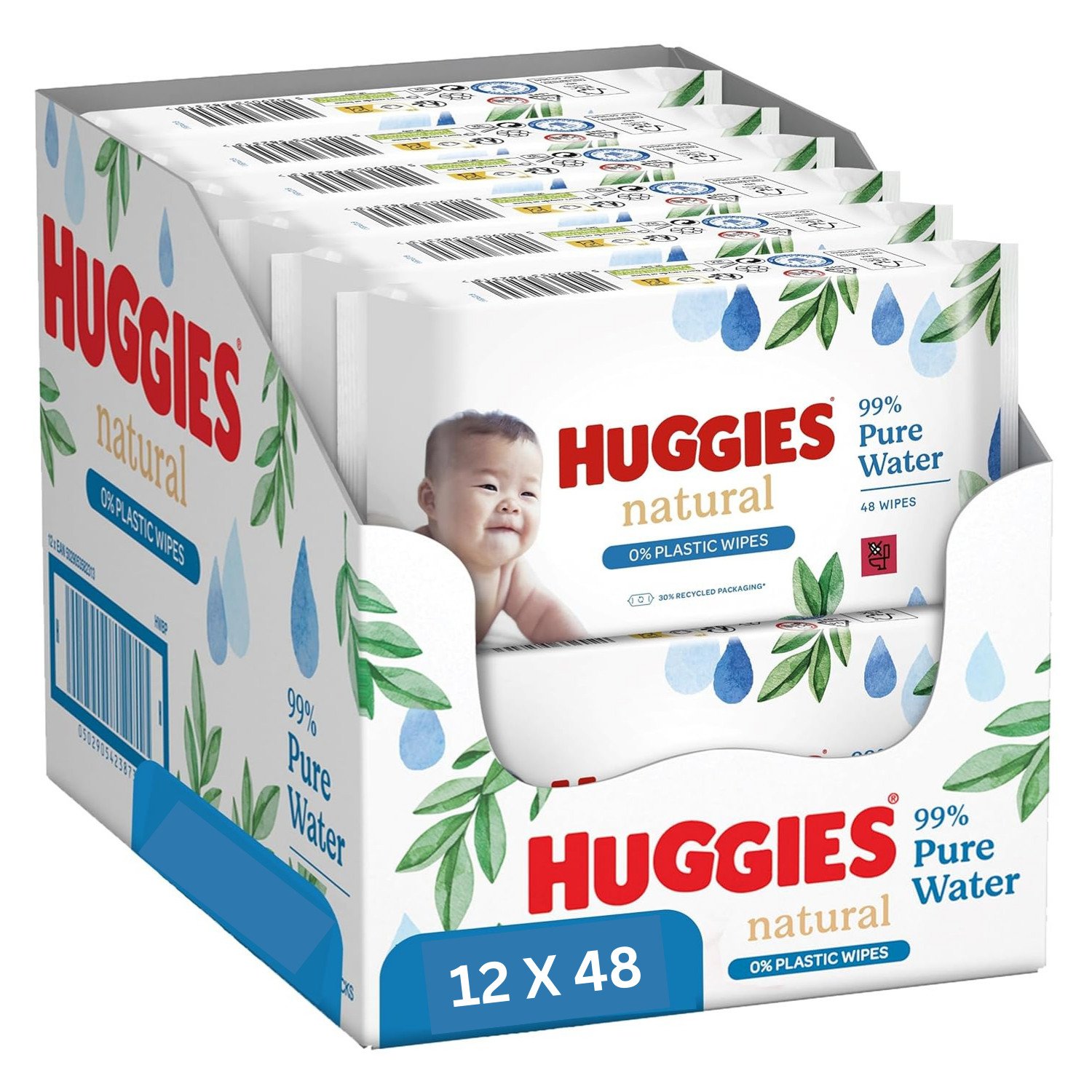 Huggies Natural Care Plastic Free Baby Wipes 48's - Pack of 12 (576 Wipes)
