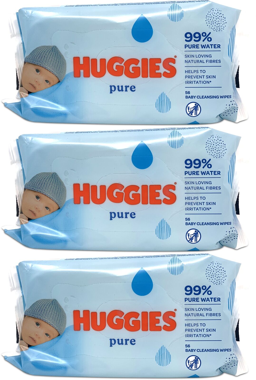 Huggies Pure Baby Wipes - 56 Wipes x 3