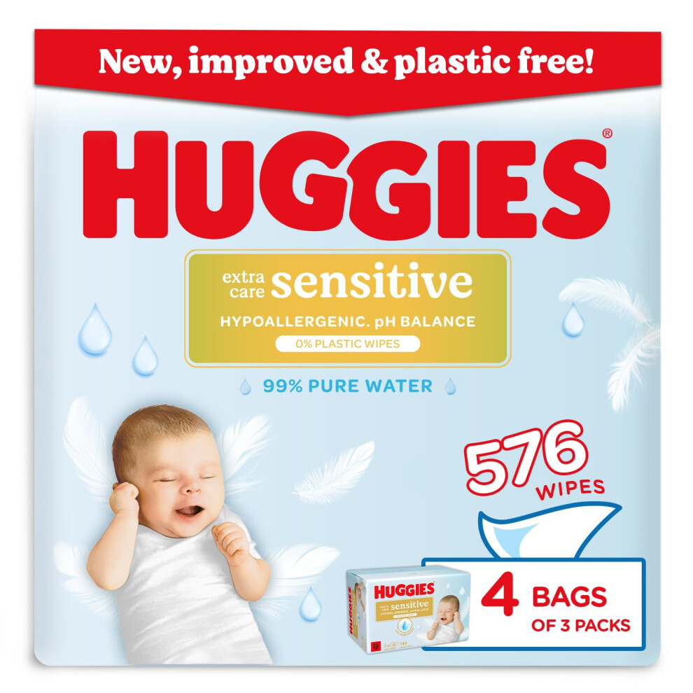 Huggies Pure Extra Sensitive Baby Wipes â Plastic Free Wet Wipes, 99% Water,
