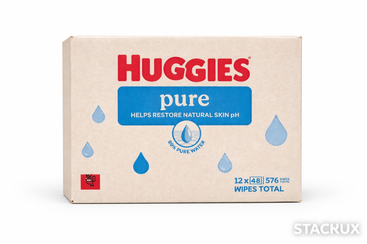 Box of Huggies Wipes, 12 Packs of 48 Huggies Pure Baby Wipes
