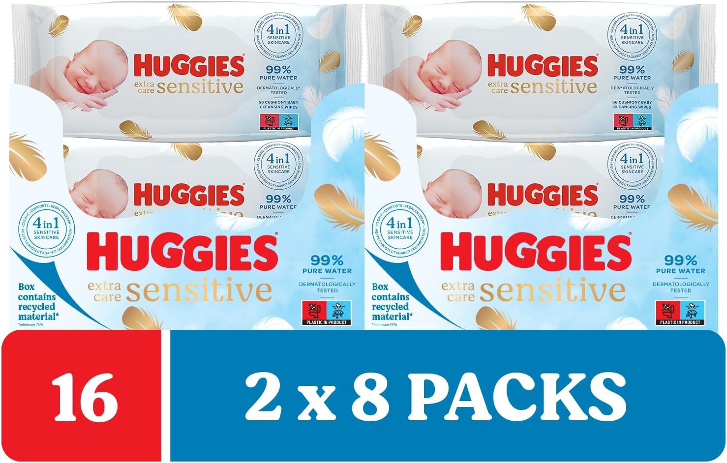 16 packs Huggies Pure Extra Care No Perfume 99% Pure Water 896 Baby Wipes