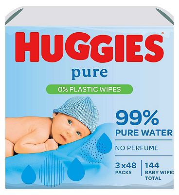 Huggies Pure Baby Wipes 0% Plastic 48s 3 pack