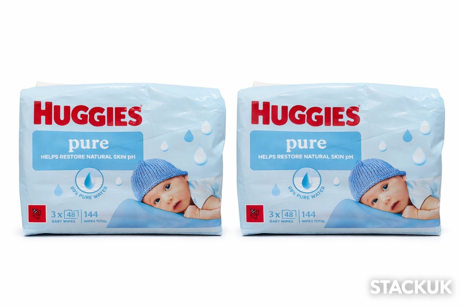 2 x Huggies Pure Baby Wipes 3 x 48 Wipes (2 Packs of 3 Packs)