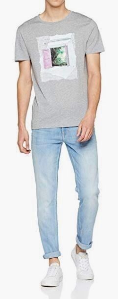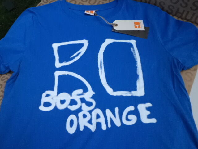 New Hugo Boss Orange mens blue slim fit graffiti art BO jeans t-shirt top Large
