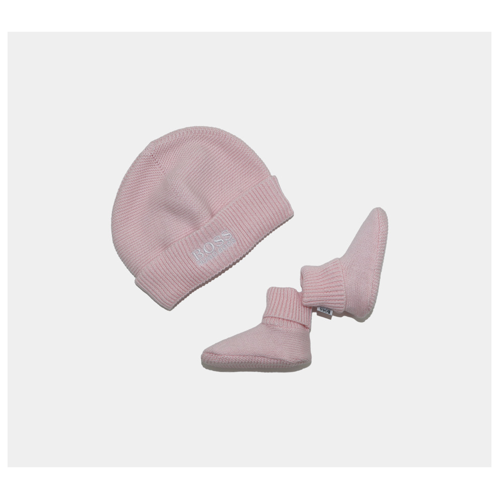 (6 Months, Pink ) Hugo Boss Baby Knit Boots Caps Set 1-6 Months