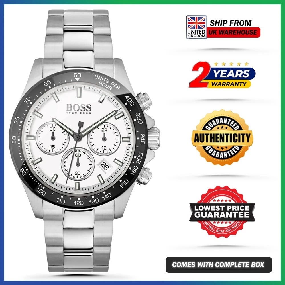 Hugo Boss HB1513875 Men’s Chronograph Watch White Dial Black Bezel Steel