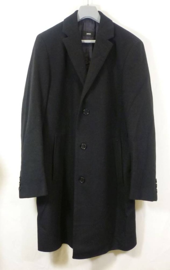 New Hugo BOSS mens black wool poly warm overcoat suit jacket coat 44R XXL £379