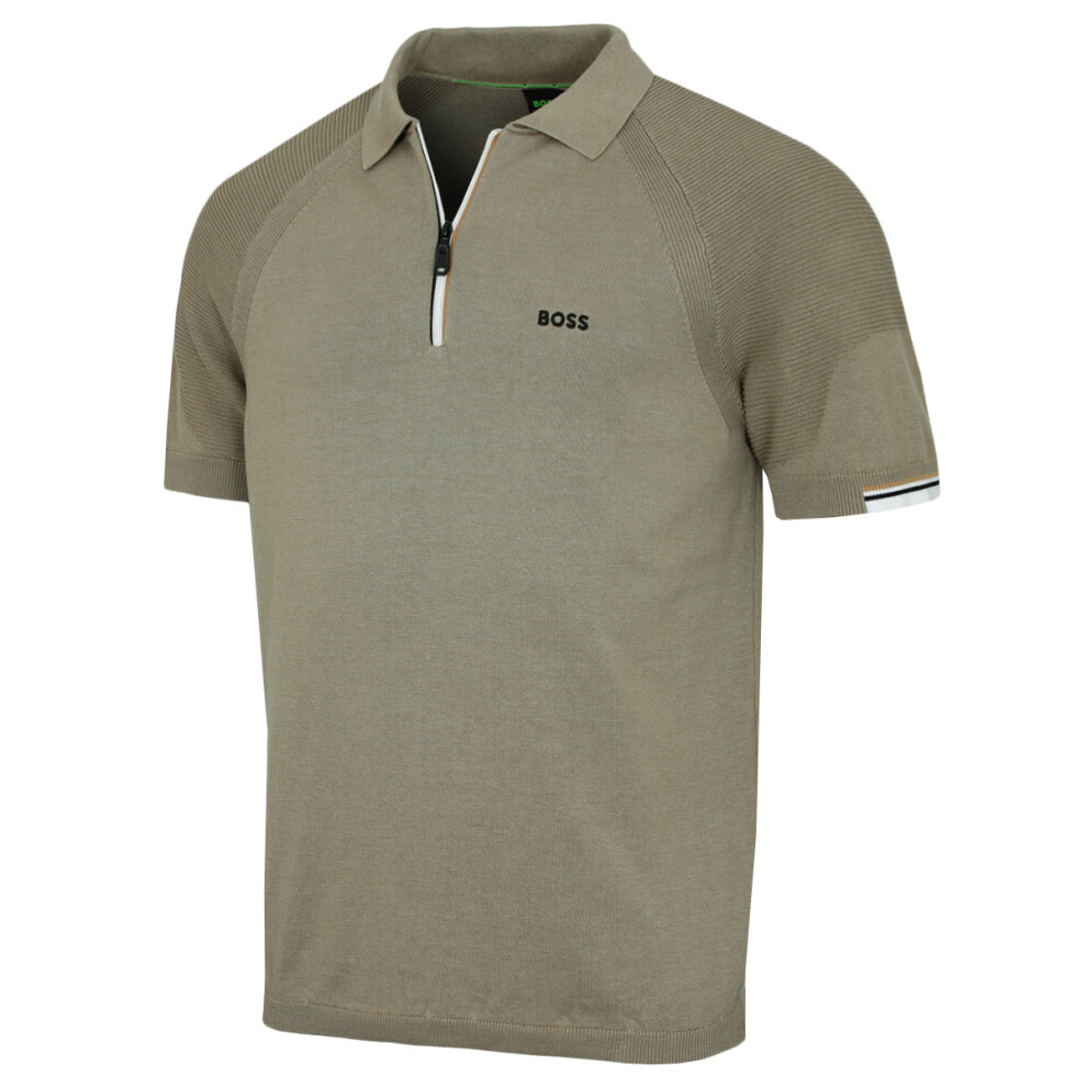 Hugo Boss Mens H-Paras 120 Zip-Neck Polo Shirt in Green Cotton - Size X-Large