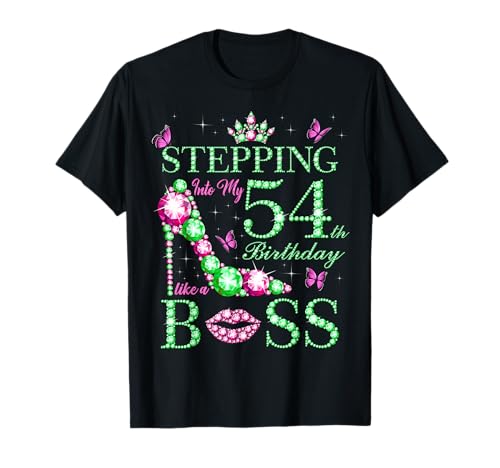 Stepping Into My 54th Birthday Like A Boss Pink & Green T-Shirt