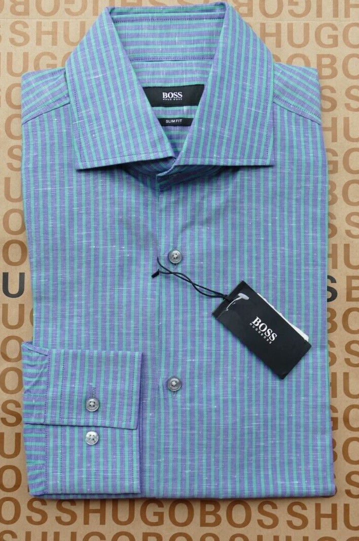 New Hugo BOSS mens green striped formal smart suit shirt 15 38 Small medium £149