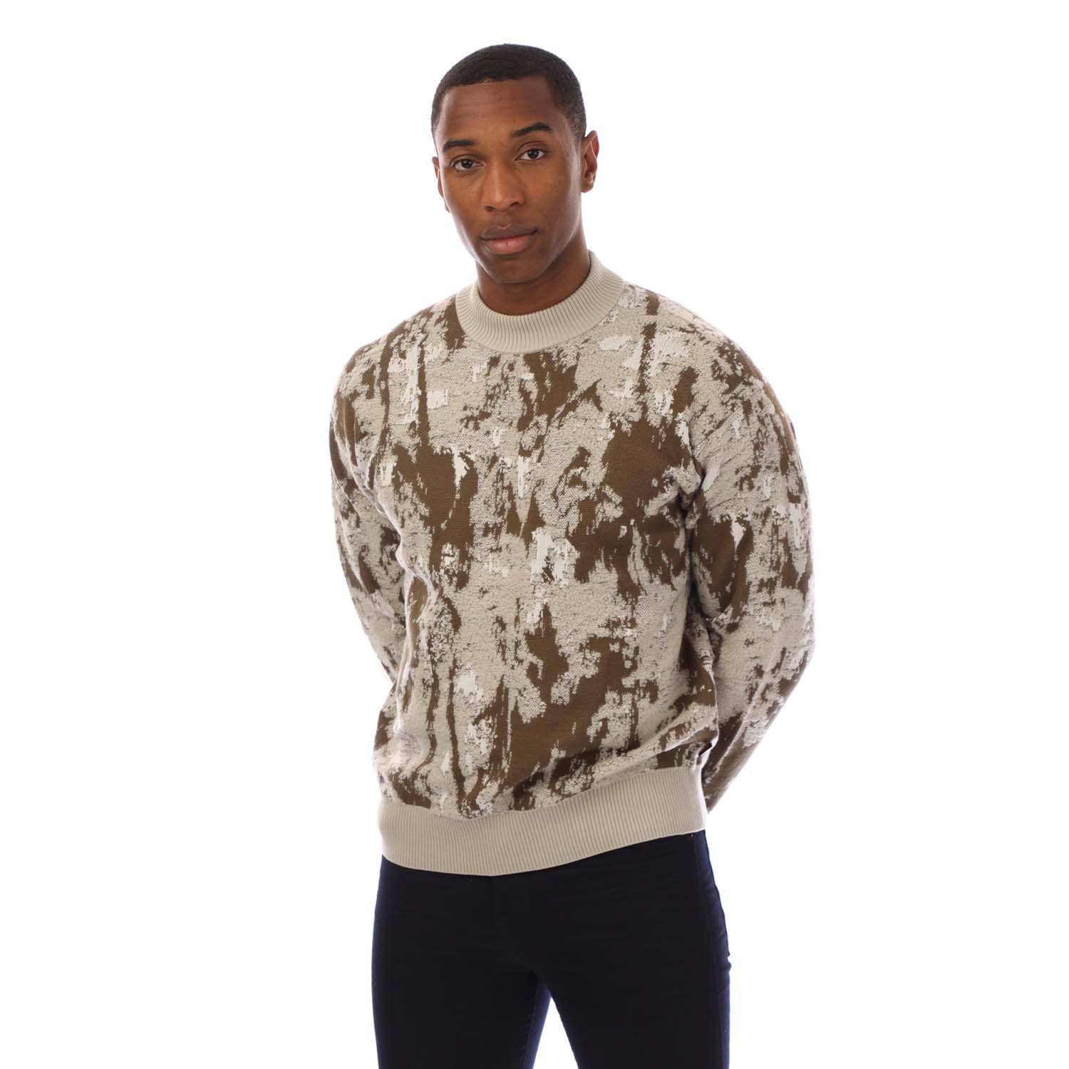 Hugo Boss Mens Palm Tree Jacquard Sweatshirt in Beige Cotton - Size X-Large