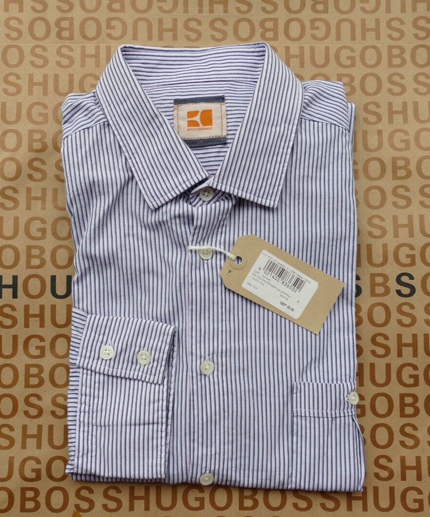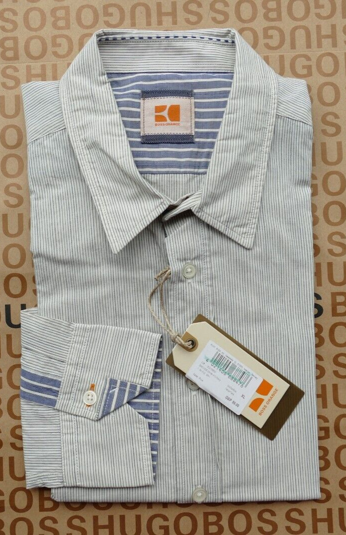 New Hugo BOSS blue striped regular long sleeve smart casual suit jeans shirt XL