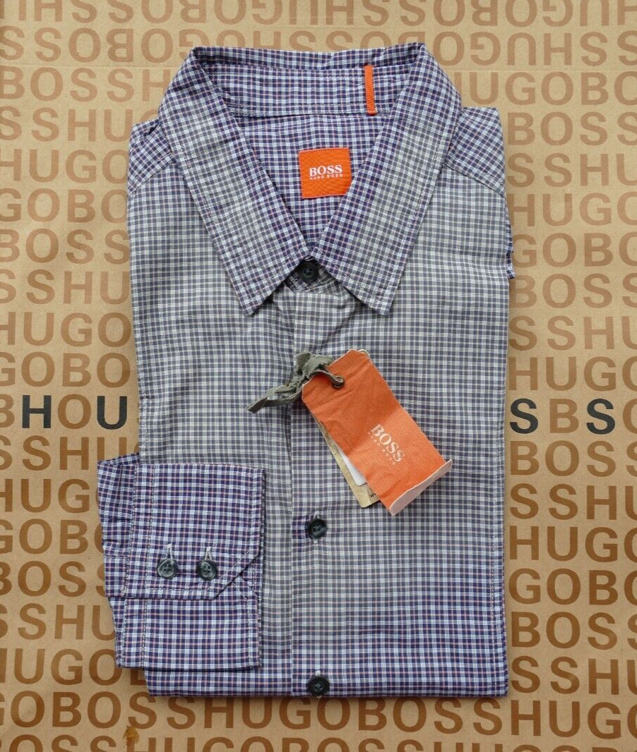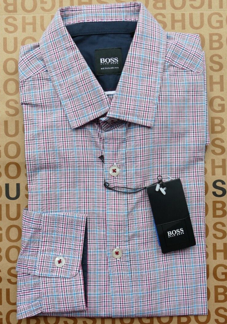 New Hugo BOSS mens multi regular fit checked smart casual jeans suit shirt LARGE