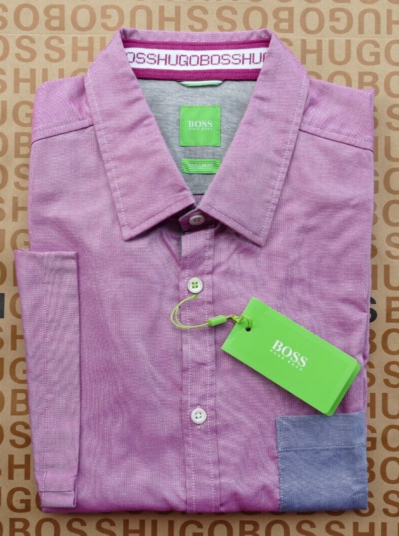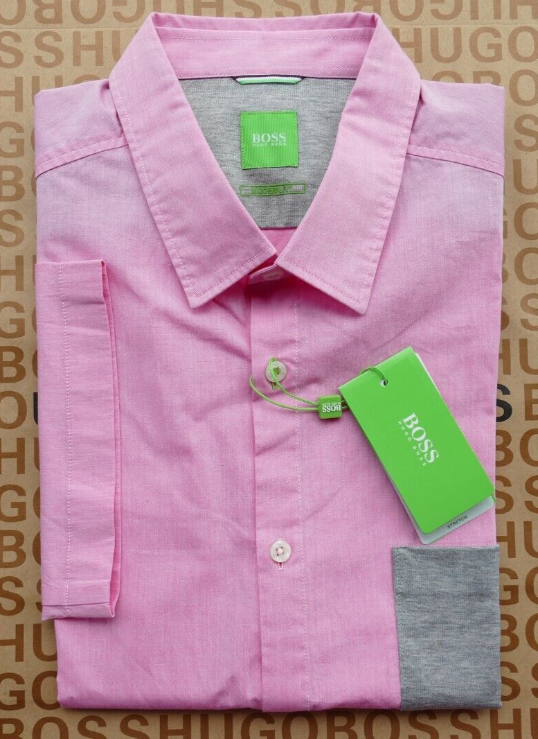 New Hugo BOSS mens pink regular fit designer smart casual jeans suit shirt LARGE