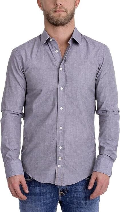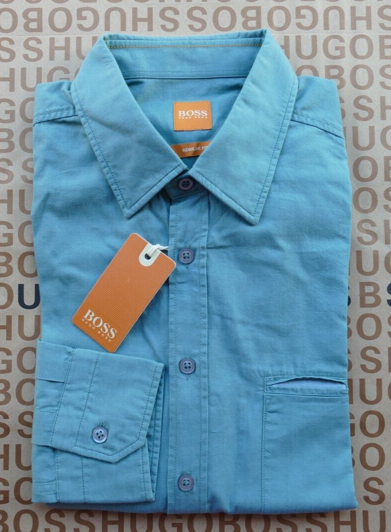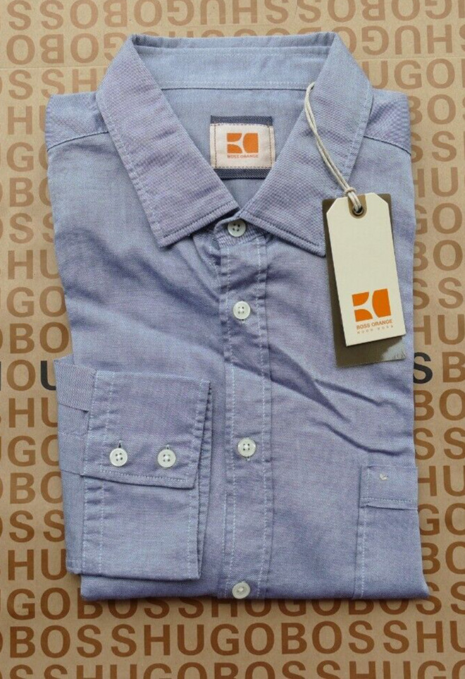 New Hugo BOSS mens blue long sleeve slim fit casual smart jeans suit shirt LARGE