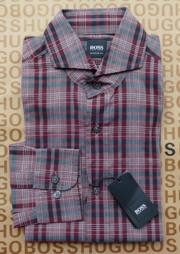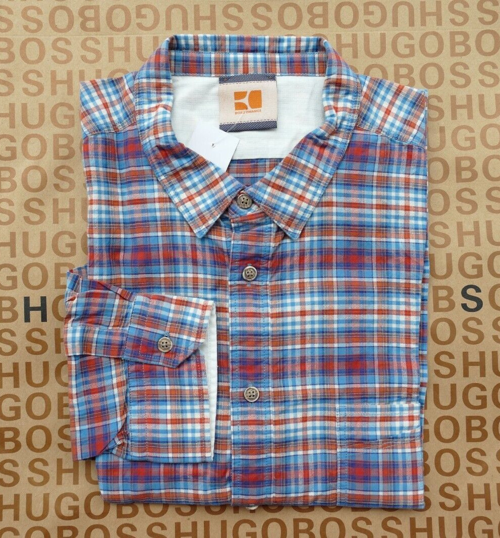 New Hugo BOSS men red check regular long sleeve smart casual suit jeans shirt XL