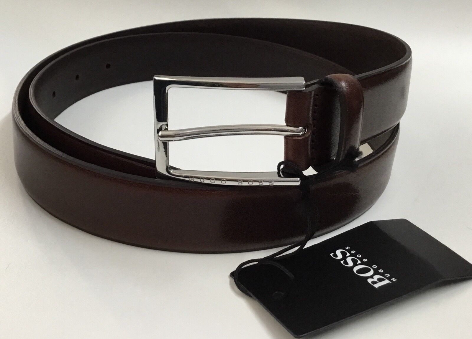 HUGO BOSS Men's Belt, Carmello, Real Leather with Metal Buckle - Medium Brown: : 90 cm