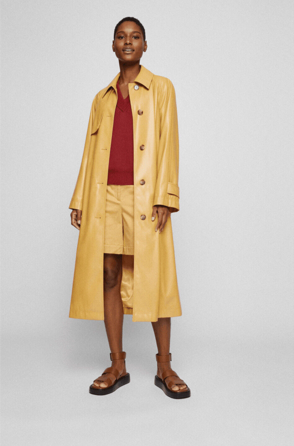 Hugo Boss Cadomi Vegan Leather Longline Fully Lined Trench Coat Yellow UK 12