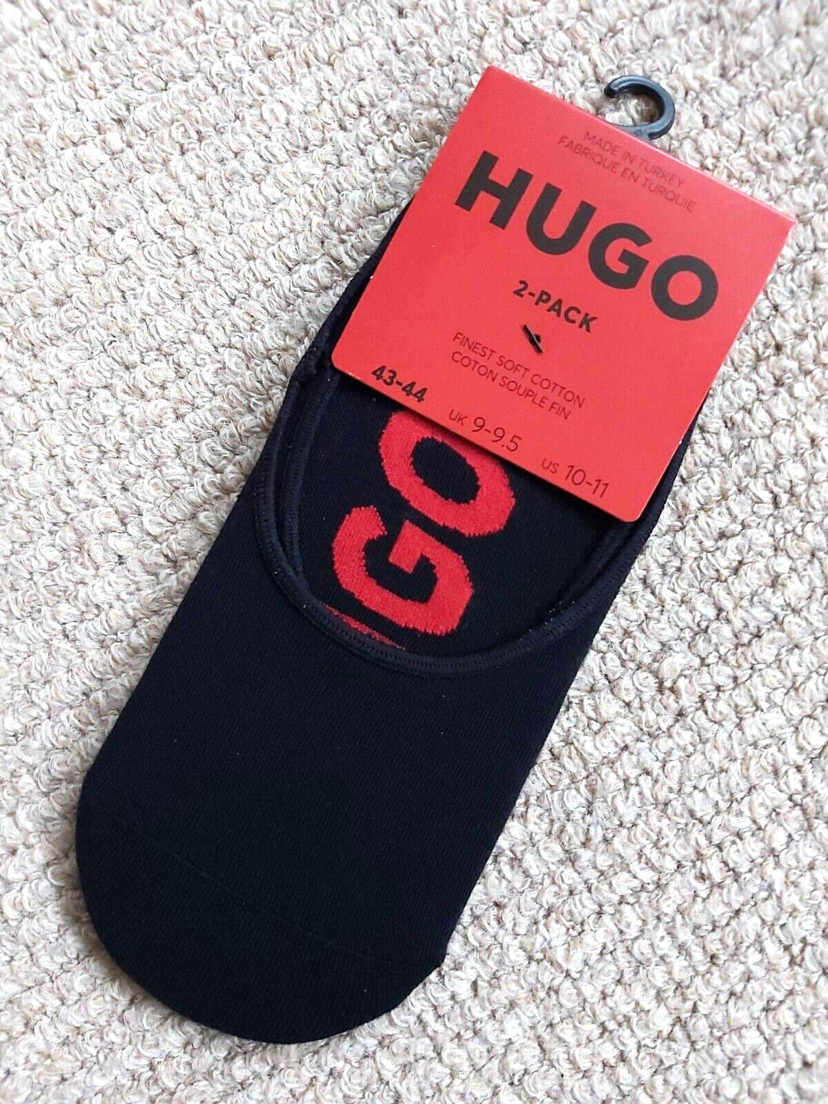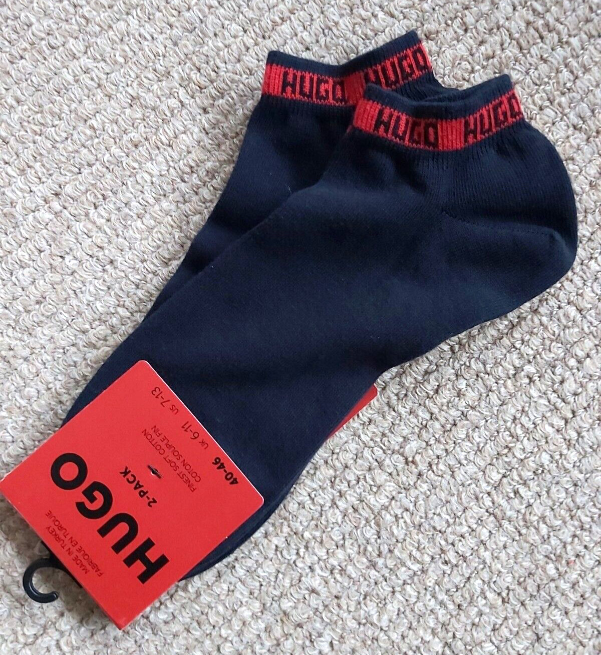 2 Pairs Genuine HUGO BOSS 40-46 ,UK 6-11 Black Mens LOW CUT socks 50477674 Hug1