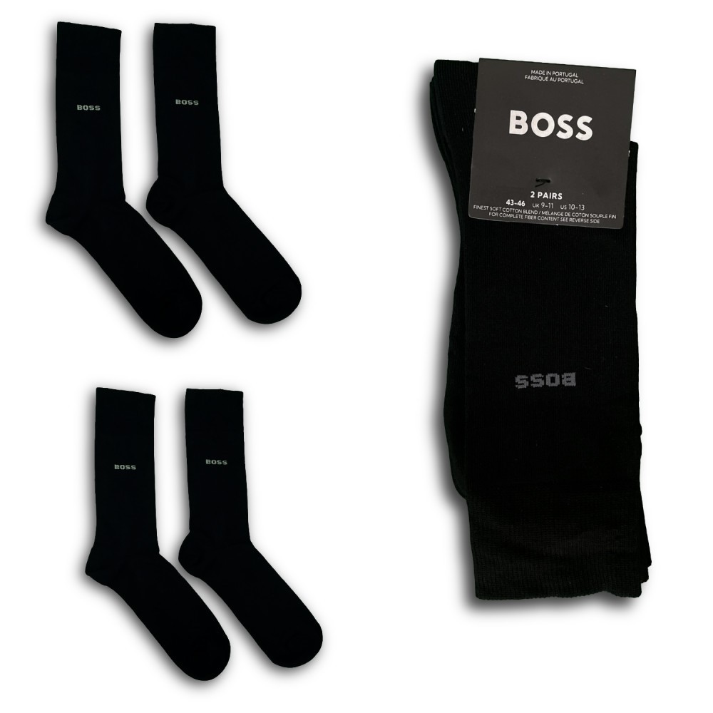 Boss by Hugo Boss, Genuine 2 Pairs Mens Soft Cotton Blend Socks Black UK 9-11