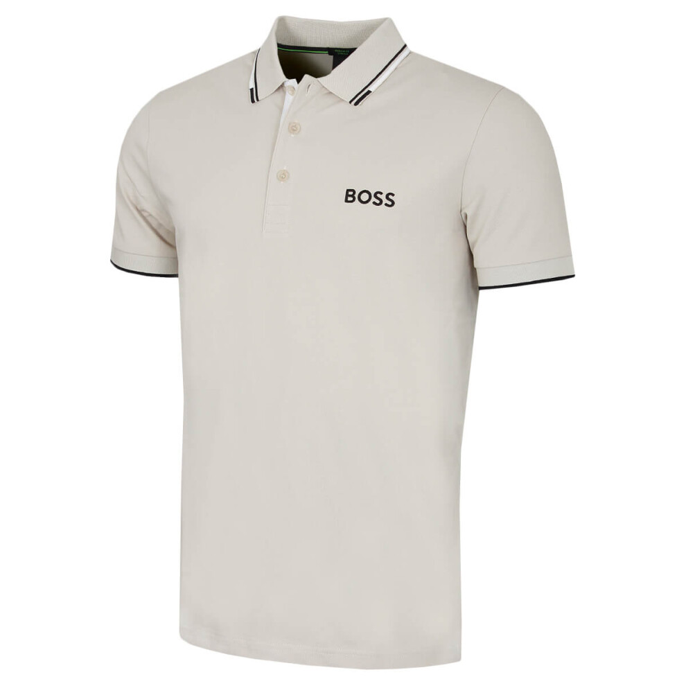 (M, Natural) Hugo Boss Mens Paddy Pro Contrast Stripe Boss Logo Regular Fit Polo Shirt