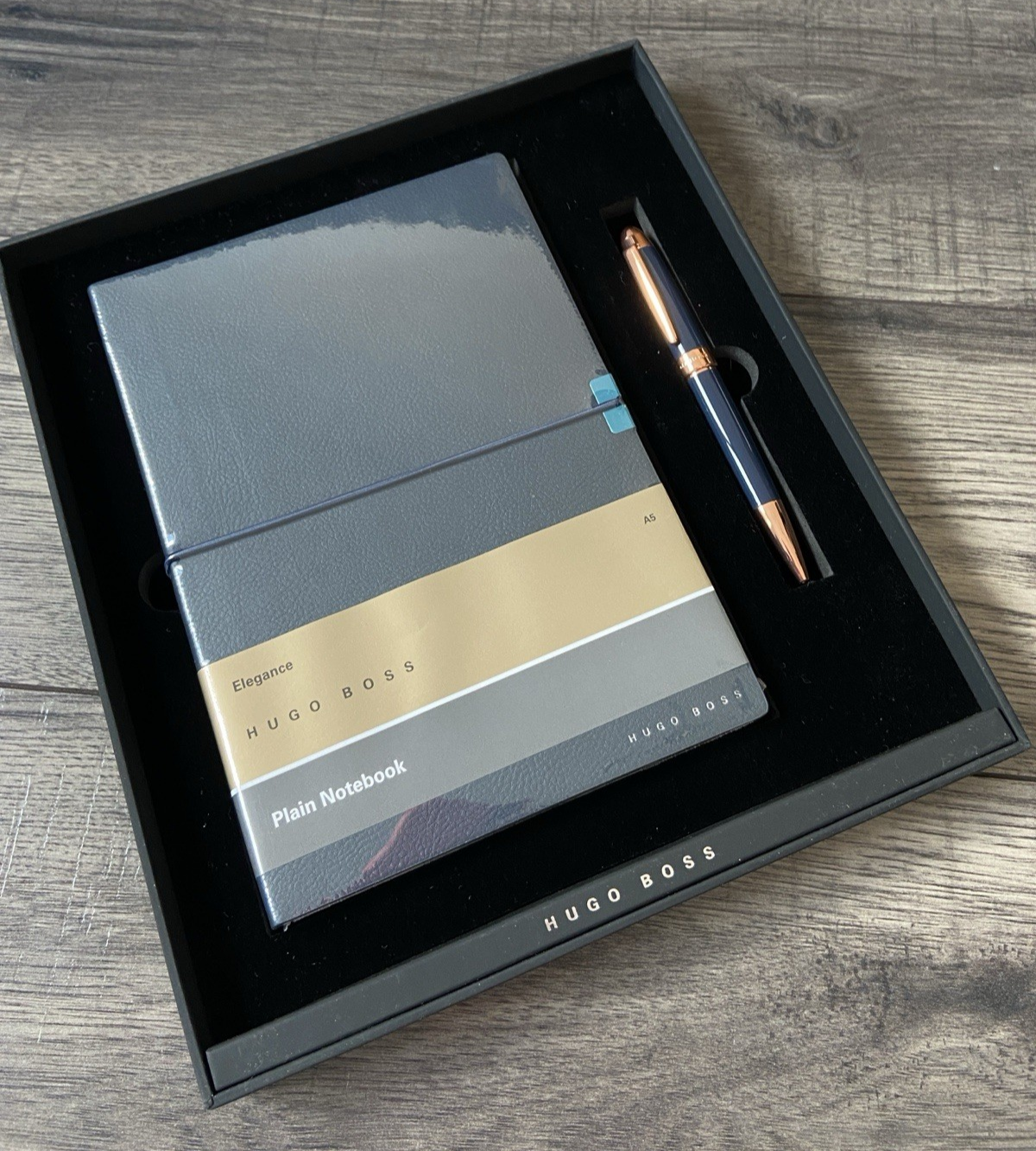 HUGO BOSS VEGAN LEATHER COVER A5 NOTEBOOK & BALLPOINT PEN SET BNIB