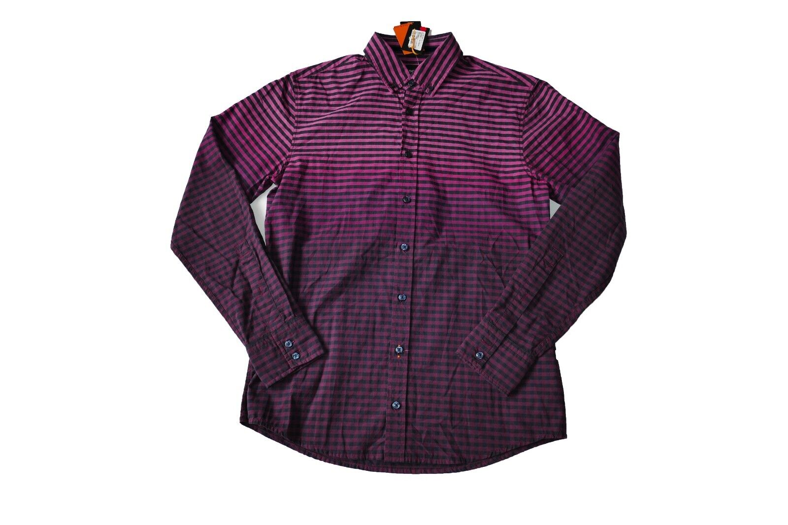 New Hugo BOSS men purple regular fit casual smart suit striped jeans shirt LARGE
