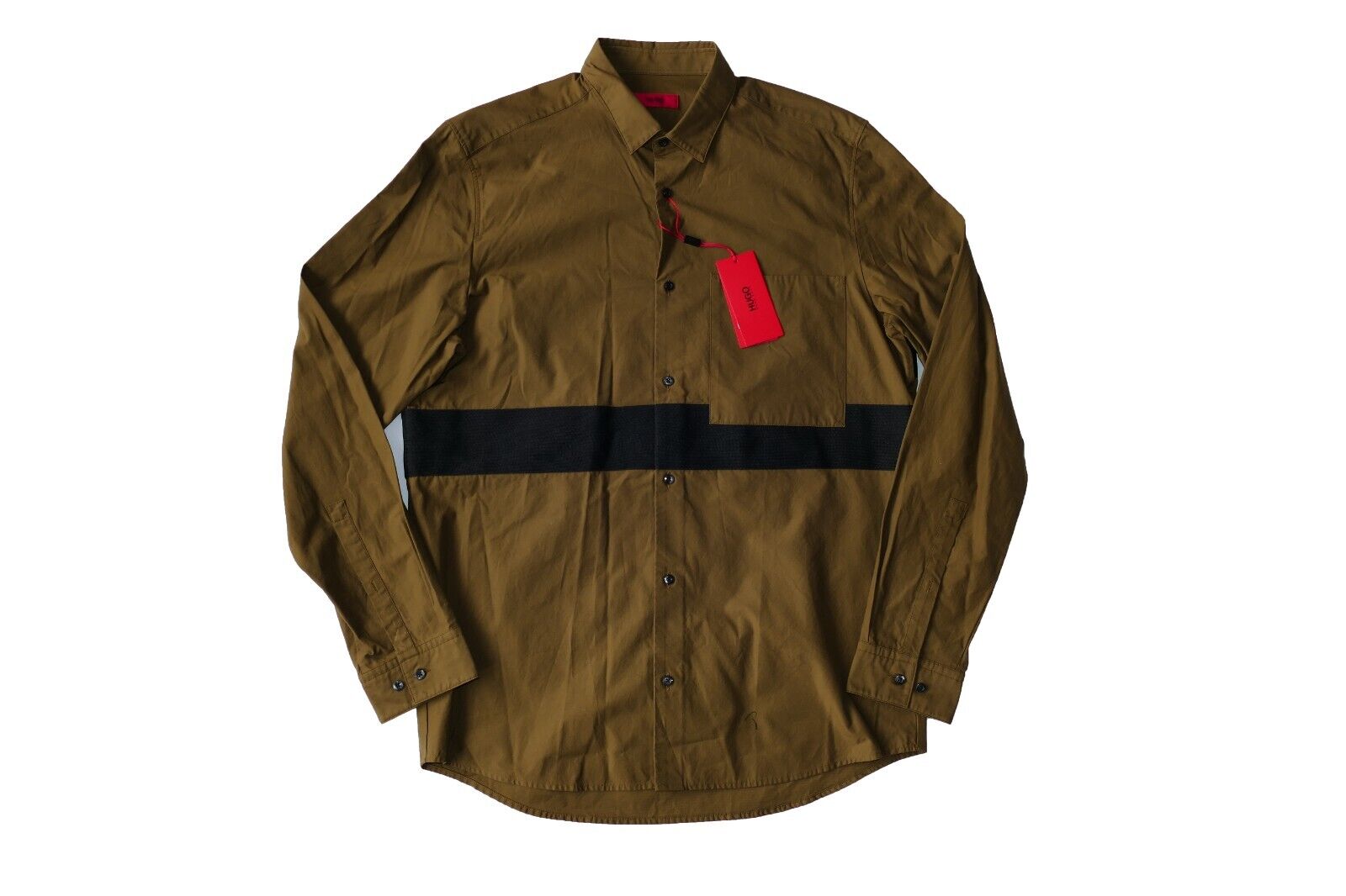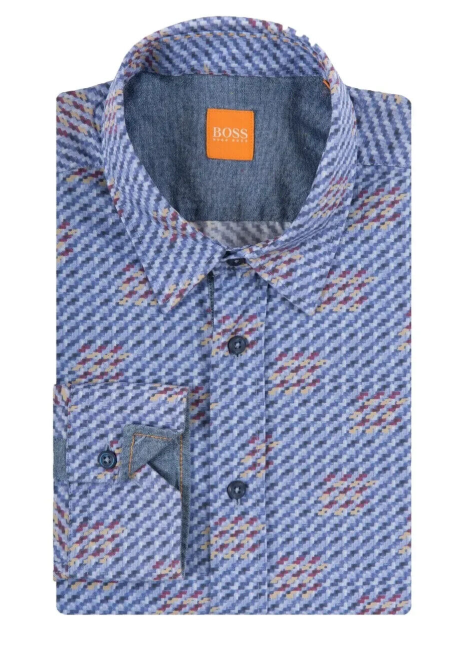 New HUGO BOSS desert motif casual slim fit long sleeve cotton jeans shirt SMALL